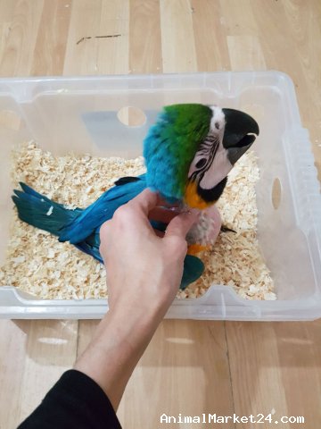 all of my macaw are hand reared and very tame and have been brought up with children, cats and dogs which make the babies very socialised and tame with anyone.