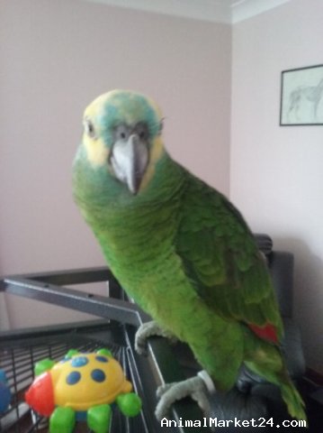 Beautiful parrrot needs a new home following the addition of a parsons terrier puppy to the family. Dave has been a lovely pet and is a very happy bird. He loves music and is generally happy to be handled. He loves to be out of his cage and does say a few words - am sure he could say more if coached.