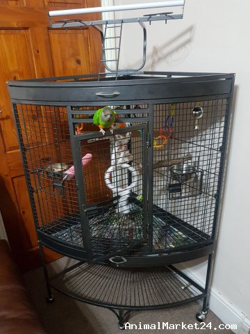 here up for free beautiful chatty Senegal parrot 6 year really funny and chatty bird comes with the large quality corner cage with toys and have some food left.
