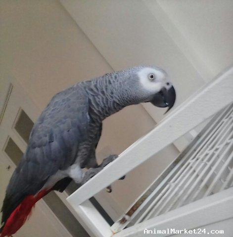 African Grey male just over 12 months old great talker comes with open top cage toys etc