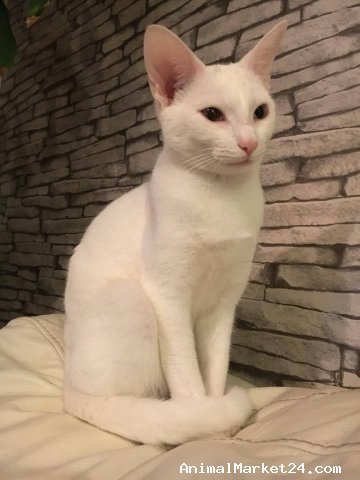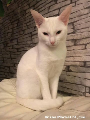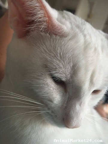 Pure white cat in need of a loving forever home.
