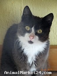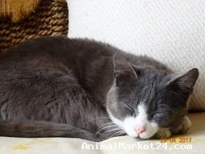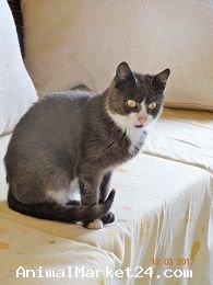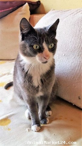 This gorgeous grey and white kitten would love a home to call his own. He is a very loving, affectionate little kitten. He loves lots of fuss but is not used to being picked up. He can live with other cats and dogs as long as they leave him alone as he is not very sociable with them. He would be better living in a home without children or he could possibly live with older children due to the fact he panics if picked up.