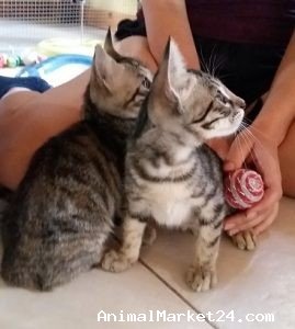 This beautiful brother and sister are both very playful, cheeky kittens. Nettle the boy plays for hours. Twirl loves her cuddles. They are used to cat friendly dogs and other cats too.They both get on so well together we want to home them together.
