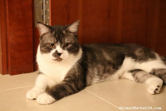 We are looking for a new and big home for our British Shorthair Mix Male Cat (1 year old with all vaccinations and already castrated).