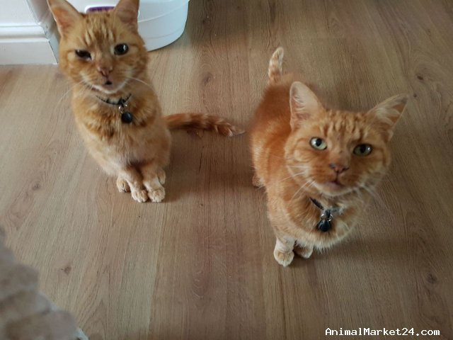 It is with deepest sadness that we are having to put up for adoption our two ginger cats that we have had since kittens. Due to an expanding family and business we simply do not have the time that we once did to devote to these two wonderful brothers. They have given us many years of happiness but now simply aren't getting the attention they deserve. Although they are around 12 they both have many years and plenty of life left in them! Mostly they get on great and are very playful and affectionate. And like most siblings there is the occasional fight which we find amusing. But they always make up! They are both such characters and have been a great pleasure to live with so we are looking for someone special to adopt them.