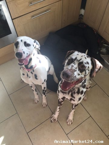 We have 2 beautiful fantastic temperment Dalmatian companions. Our boy is 3 years old, and liver spotted, and our girl 2 and black spotted. Both are family pets, and fantastic around our 3 children 7,4, and 2. I have grew up with Dalmatians,
