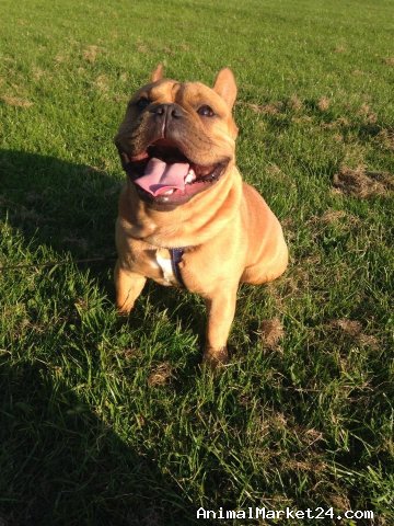 Bronson has many champion dogs in his pedigree, he is the sweetest boy you could ever meet , a temperament to die for , he is a beautiful colour of red and he is also a very compact chunky boy with great bone and structure.
