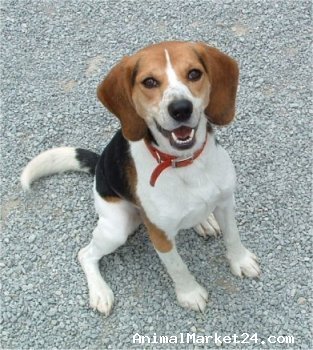 This very pretty girl is Izzy, a 2 year old Beagle cross . Izzy is a lovely friendly girl- loves being with people, and walks really well on and off the lead. She has lived with another dog, and is fine with any she meets out walking. She has lived with cats. Izzy is good with small children, so we will only consider homes with older dog-aware kids, or adults only, fully vaccinated and micro-chipped.
