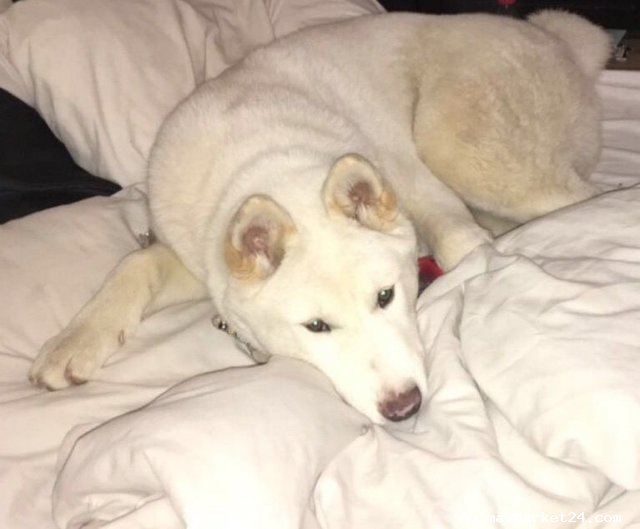 I'm told I'm very exotic looking, but I've always been the same really. Exotic from birth. That's me. I'm a 28kg Huskita, (Husky x Akita). Told you I was different, eh? Oh I've been hanging around now waiting. Hoping. Wishing for a new family. Please let it be soon because I so want to keep you warm as the cold nights draw in!