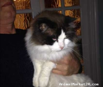 Ragdoll cross bi colour un neutered cat called pebbles, he is very loving and intelligent.