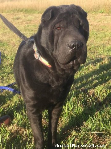 Raven is a 4yr old black shar pei male, he is neutered, vaccinated, microchipped, flea and worm treated. Raven will be rehomed .