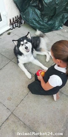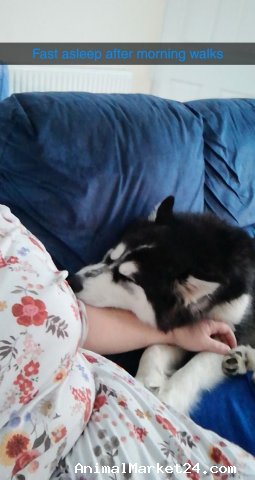 Riley is good in nature, very loving, typical husky that loves his walks and has a very playful nature...