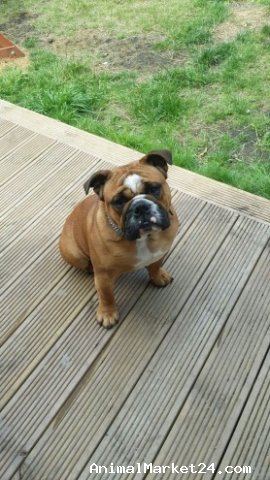 1 year, 6 months old. Please note, as this pet is for adoption, this may only be an approximate age. Bulldog bitch for adoption, good temper meant good with other dogs must go to a good home were some one is at home most of the day pet home only thank you