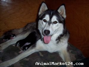 Black/white Siberian Husky,,