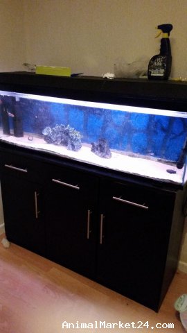 I have for sale a 4ft fish tank and black unit for sale. Heater is brand new also comes with filter. Extremely heavy will need 2 people plus a van to remove. There are some tetras mollies and goldfish currently in the tank. A couple of ornaments and sand too.