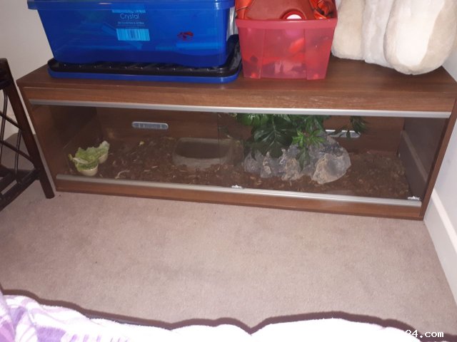 Hi, we have our seven year old red footed tortiose. He is very well behaved and sociable. Tom comes with an outdoor run, indoor run, and all the bedding/food we have left.he comes with a large tank with a heat lamp and a daylight lamp, food bowl water bath bowl and a rockery that he likes to climb , he enjoys being out in the garden and loves his lettuce and dandelion leaves.