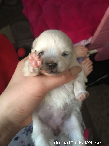 Here for sale are our teacup/miniature x2 girl puppies, pure white, short legs, perfect round noses, short eared puppy.