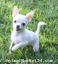 Beautiful Chihuahua girl is looking for her forever home. She has been vet checked and wormed she will have been vaccinated (both injections) and be chipped. She has a five generation pedigree she's got a lovely gentle nature and unusual markings. She has been brought up in my home and has had the very best of everything. She would make a lovely companion pet home only. She will be ready to leave after 2nd injection 10st April at 10 weeks old Any more info please don't hesitate to ask///