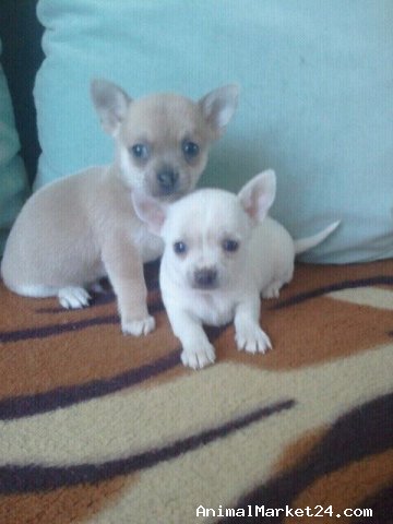 I have a beautiful male chihuahua puppies for sale, from a litter of 3 born on 10th of October.One is pure white and other blue fawn. Mum is family pet, who is kc registered and has a great temperament. Dad is a friends dog, kc registered doing very well in dog shows. Both dogs raised with children and other pets.Will be vaccinated and vet checked. Will leave with puppy pack of food, treats, etc. Anyone interested is welcome to view.