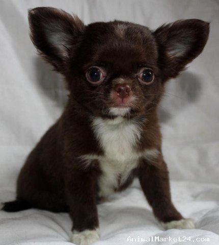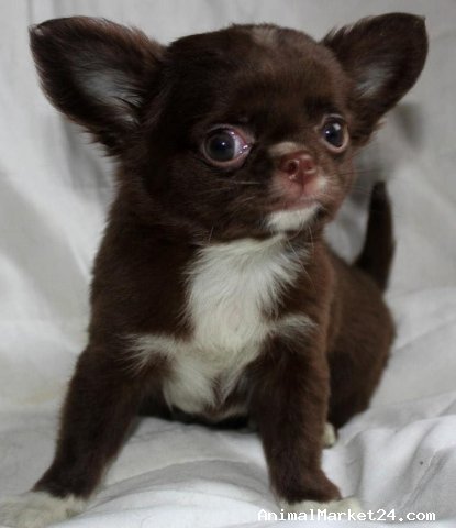 Beautiful rare top quality Chocolate/white male Chihuahua with unique markings ready . Anatomy wise she is perfection, with no faults .Very happy and playful little puppy with big bright eyes and apple head. Fully vaccinated, health checked, microchipped . Genuine enquiries only please.
