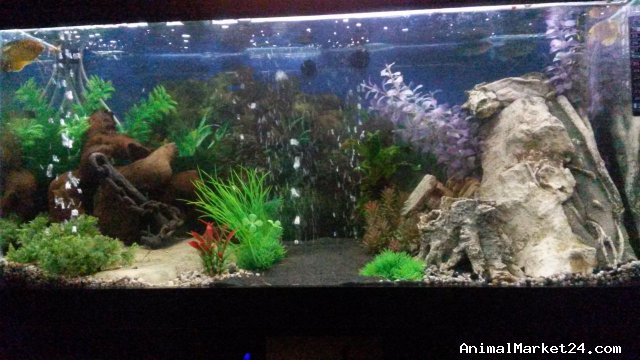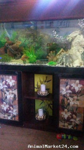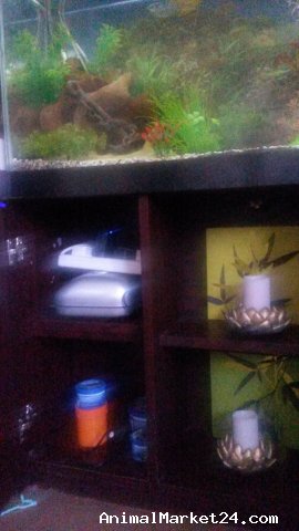 Selling fish tank with stand with all acessories and fishes: filter, light - led strip , air pump - 4 exit, gravel -15kg, bogwood ×3 , large decor rock ×6 , artificial plants × 8, life plants, decorative ornament. Gold Gourami fish ×2, Blue Gourami fish ×2, catfish ×2 (ancistrus male and female ) . Only serious people place. No time wasters. Any questions please contact me.