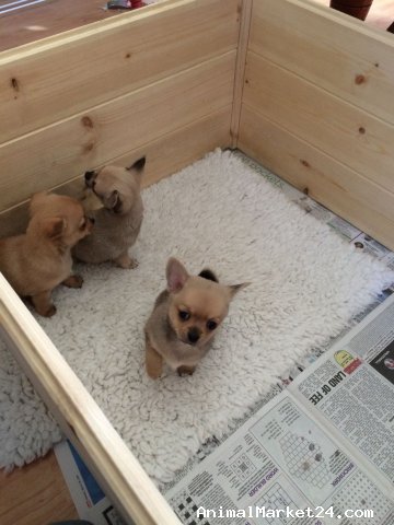 Ready now. Please read all ad separate prices for each puppy. I have a beautiful tiny true blue smooth coat little boy. He has a white chest which really makes his blue colour stand out. He is a loving and gentle little boy who loves cuddles. I also have two ultra tiny long coat caramel fawn little boys. They have chocolate noses. They also are tri colour with white chests, fluffy beautiful little fur babies! They have button noses and lovely domed heads with tiny little legs. They are super friendly and affectionate, just lovely. The long coats are charting to be a very tiny 3 pounds when adult. The puppies will carry colour genes. The parents have excellent, friendly temperaments which will be passed on to the puppies. The puppies are being raised in the centre of our busy home with lots of care and attention. They are now developing their own special personalities, they are playful, loving and very affectionate. They will be wormed with Panacur and weaned onto Royal Canin mini starter. They will be happy and well socialised. The puppies will be ready to leave . They are micro-chipped and vet checked. They will have a nice puppy pack to help them settle in their new homes. We want the best loving homes for our babies. They need careful homes that will look after them well and appreciate their tiny size. No full time or whole day workers please, chihuahua's need company. No homes with children under 5 as chihuahua's are just too small for young children. Please call for more information. Calls preferred if possible.
