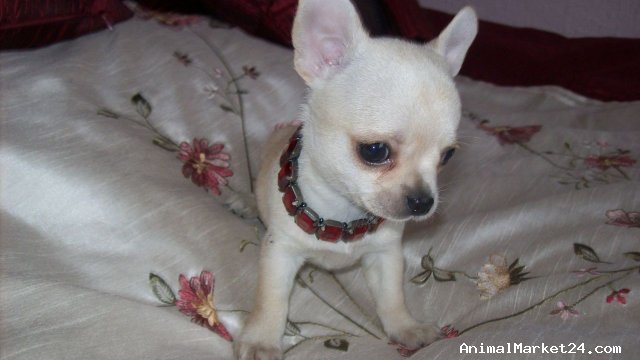 Chihuahua Puppies Had vet check 1st vacc.and microchiped Born and being lovingly reared in our home.Parents are here to see and have lovely temperaments. Any enquiry please feel free to contact me. 3 generation pedigree , k.c puppy,Fawn boy and White boy very tiny..