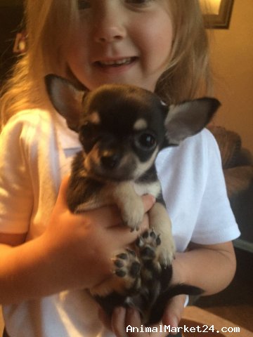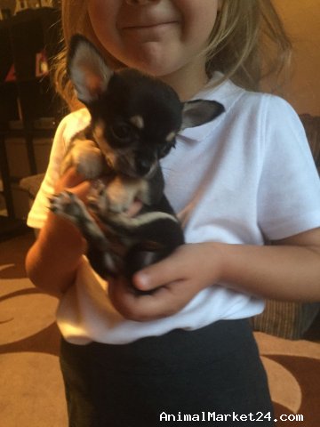 Bailey is our beautiful chihuahua pup. His looks are very typical of the chihuahua breed, with his short snout and perfect appledome head, he really is amazing. He is a 5 generation pedigree boy. He is super cute and extremely playful, often being the first to initiate playtime with his brothers and sister. He was the 4th born from an amazing litter of 5. Mum is a cream chihuahua and dad is an absolutely tiny lilac boy. Bailey is now starting to eat solid foods and is growing into a beautiful little pup. He is being bought up around children and other dogs so is already an extremely sociable little boy. He is living in an extremely busy family home so will be used to all general household noises. Bailey is looking for a 5* home only. Can be housed with children and animals. He will leave for his new home with a full puppy pack including:- Toys, Puppy pads, Blanket,Food, Information and worming papers, Pedigree certificate, Microchip card, Vet health check paperwork. You will also have a life time of support from myself should you need it.