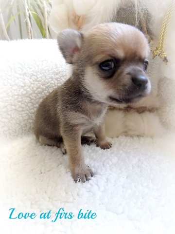 We have cute short coat excellent bloodlines chihuahua to offer. Sire is a successful imported show dog Spencer Dogomania FCI : 2x junior champion, 9xBB , 3xBiS. Mum is our chocolate pedigree registered girl (show line, her dad is champion Ballantine's Apocatequil FCI). Mum and dad can be seen. All the puppies have the most wonderful nature, apple domed heads, perfect scissor bites, short muzzle and compact body. Our babies are very precious to us and are given the very best start in life. They will leave: *** pedigree registered. *** 5 generations pedigree. *** fully vet checked. *** microchipped. *** petsplan. *** 1st vaccination. *** wormed ( Drontal). *** puppy pack including: ^^^RAC pet carrier. ^^^blanket. ^^^bowl, puppy collar. ^^^bag of Eukanuba food. ^^^t-shirt. ^^^toys. The puppies will be ready to leave us . We have available girls : ***Black girl "Singular Sensation". ***Cream girl "Macadamia Girl" . **white girl " Sunday Silence". Boys : ***fawn boy " Love at First B" ***black boy " Diamonds are Forever" ***white " Heartbreaker ". We only sell to forever pet or show home ... so no time wasters please. Genuine enquirers only, no more dreamers or photos collectors.