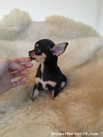 Absolutely adorable tiny chihuahua puppy, bred to be true to type with a short nose, large apple head, perfect stop and short compact body. Lovely outgoing personality, full of fun and mischief. Ready to leave now at 12 weeks old, will come fully wormed and microchipped with puppy pack containing everything you need to start incl Royal Canin mini mother and baby starter, toys, chews, scent marked blanket.