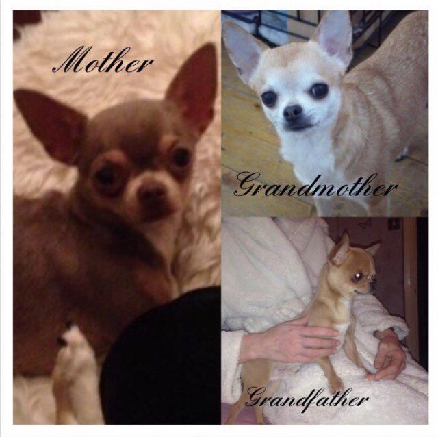 Has been raised in family home with all usual sights and sounds. Mother Rose is my 4lb Lilac and Tan who is fully kc registered and has a wonderful temperament and dad is my stunning Red boy Bramerita Magic Trick, also a super temperament with superb breeding. I have included pics of mum, dad and grandparents.