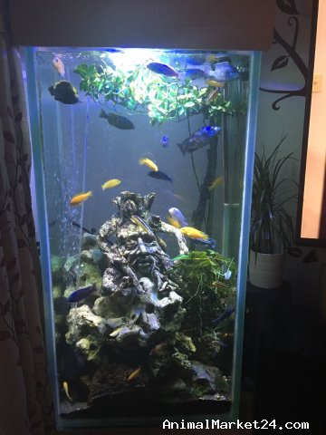 Here is a full Malawi set-up in a custom made aquarium for sale.