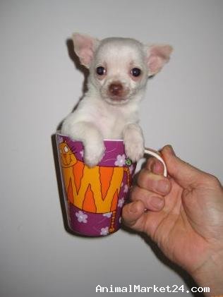 I have for sale a white smooth coat chihuahua puppy from a wonderful litter of 2. The parents are both my pets and are great examples of the breed with excellent pedigrees packed with champions including UAE and American Champ Rafina Logan's Run. This little boy is an amazing puppy with a top personality and perfect breed characteristics; Apple dome head, short muzzle and correct stop, large upright ears, short straight back, correct bite, and tiny in size. Would make a wonderful pet, but even more so a great future stud. He will leave with his first vaccinations (or I can keep him for you a little longer and he will be fully vaccinated and microchipped), and a puppy pack to welcome him to your home, along with a lifetime of help and advice from myself. For more information please call ..