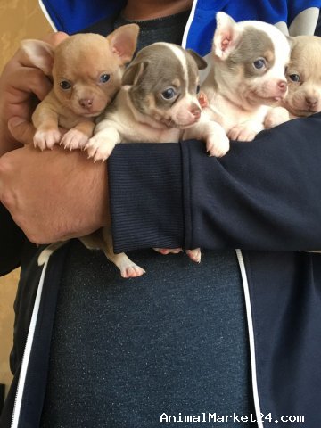 We have gorgeous KC REG Smooth Coat Chihuahua pups available now to good homes. Our pups have been bred well & come from fantastic bloodlines, They have many champions in their pedigree & are a perfect example of the Chihuahua breed. Both parents are here for you to meet , Mother is white & was heavily pregnant & Daddy is chocolate Puppies have been vet checked, wormed, microchipped, fully vaccinated & will leave us will all correct KC papers &pedigree. Please call for more info & to arrange a viewing. Thank you