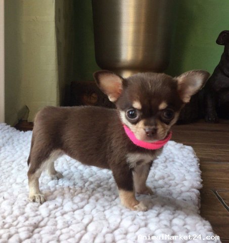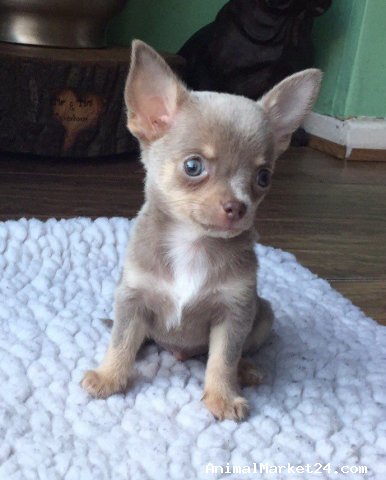 Beautiful puppies one boy lilac and two chocolate girls , dad is lilac mom is chocolate x mom and dad are tiny so these babies will be. Around young children and other dogs microchipped, vet check, 1st injection and wormed. Ready , girl is 561 grams at 13 weeks old so to small.