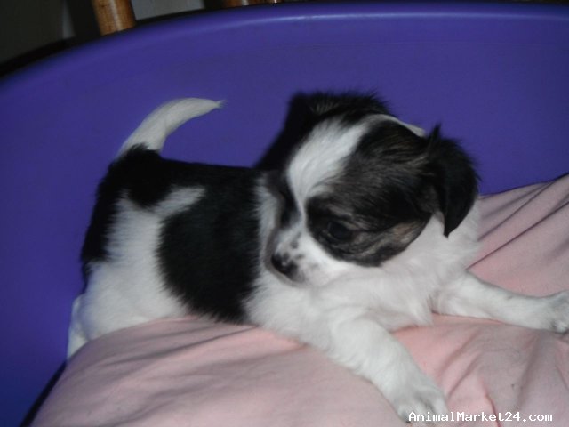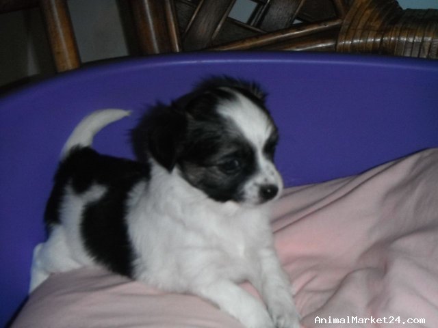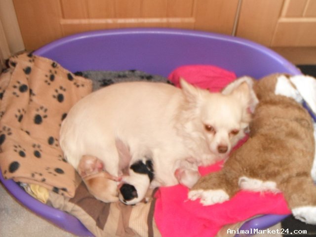 ***ONLY DOMINO AVAILABLE*** registered long coat Chihuahua puppies bred by KC Assured Breeder. Self whelped by their Mother from a championship background, these stunning puppies, WHITE GIRL , GOLD GIRL , black & white boy (Domino), will be fully vaccinated, micro-chipped, vet checked and have flea prevention and wormed on Drontal liquid suspension. The puppies will have their Kennel Club documents available, veterinary card , together with a luxury puppy hamper, ready to leave at 10 weeks old. They will be socialised and raised in a homely atmosphere with their parents & grandparents present for viewing, together with their certificates showing lineage.