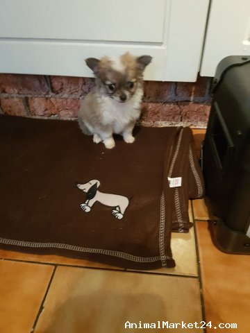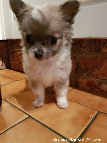 3 months old PURE OPTIC chihuahua male, female for sale. An amazing girl, with a perfect quiet character, perfect colour and body. She has got no faults : her bite is perfect, 6 by 6 teeth, 1.5 kg , very thick fluffy fur, absolutely white, short square body, short nose, good moves. Expected weight when fully grown is around 2.5 kg (5.5 lb.) Both parents are from USA, mother is orange with white genetics, father - pure optic white, both are fully KC registered. The girl is born in the UAE and will be sold with endorsements. pedigree registration is available for collection together with the pup. Both parents can be seen. The girl resembles her father. The girl is playful, very calm and obedient , she loves people and is good with other dogs. He is fully vaccinated, wormed, microchipped and KC registered. Last two pictures are the father + father when he was a puppy.
