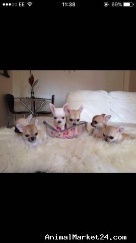 A stunning bunch of tiny KC registered teacup chihuahua for sale. The tiny puppies are all female and male. Both parents can be viewed as well as all parental heritage and KC registration certificates showing a history of 5 generations. Parents bloodline contains a total of 19 champions, winning a combination of Crufts and American Crufts.