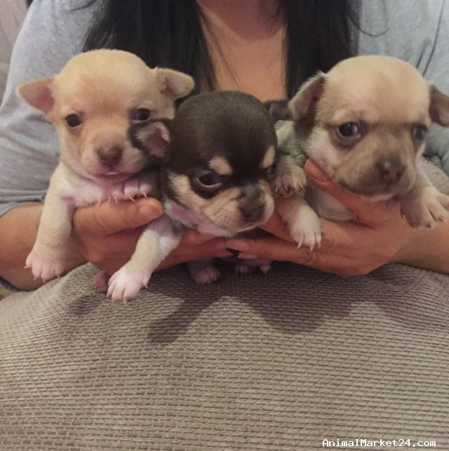 3 Suberb Chihuahua Girls and Boys The mother is a beautiful Gold with Chocolate carrier and the father is Lilac Tan, both parents have excellent temperament. Puppies are Ready to view, and put reserves TO KIND LOVING HOMES ONLY.