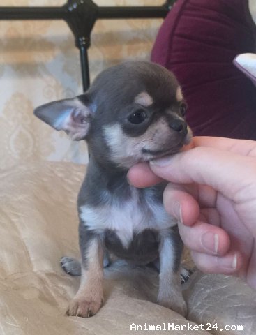 Gorgeous k.c reg smooth coat Chihuahua puppy's. Mum is blue and tan and dad is red. Both parents are show dogs and have very good breeding behind them. All our pups are bred and cared for to the highest level possible. We have bred dogs for almost 30 years so we know what we are doing and pride ourselves on the dogs we have bred.All pups will be fully vaccinated , micro chipped, wormed and have 2 intense vet checks before going to their new homes. These pups have true show potential, but obviously will also make fabulous pets. The KC will be endorsed ,but maybe lifted with conditions. Please call as I will not answer text or emails or send pictures.