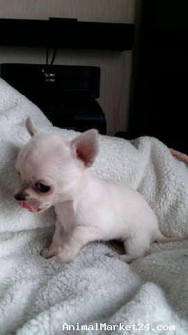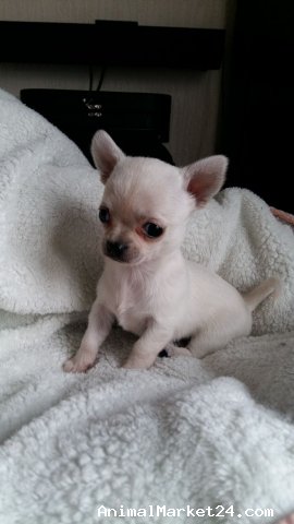 gorgeous female cream chihuahua smooth coat chihuahua home bred and both parents can be seen full of character and up to mischief brought up in a family environment around children and other dogs she will be ready to leave after her vet check 1st vaccination and microchip she will leave with her, please telephone for anymore information and a viewing . thankyou.