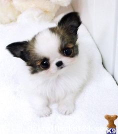 Mother is a type chihuahua with a luxurious big silky coat, and father is an teeny tiny exceptionally rare Blue Merle Parti Tri USA import only about 3.5lbs.