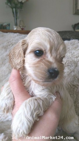 I have a beautiful litter of Toy cockapoos from my stunning cocker spaniel . She has a fantastic pedigree loaded with champions , she's in perfect health and up to date with injections and health checks , she has the most amazing gentle and friendly nature and adores people and her puppies .