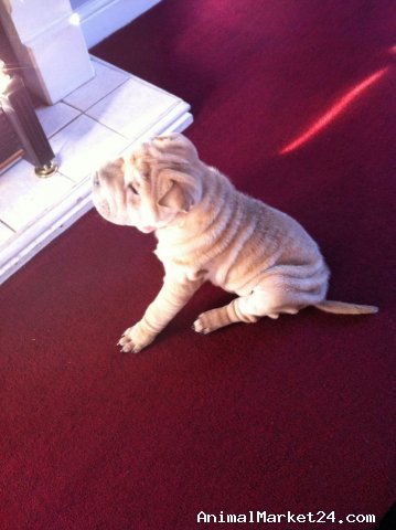 Shar- Pei boy pups READY NOW ,mum is a blue horse coat and dad is a blue brush coat. The puppies have been vet checked by Sean Cleary a Shar Pei specialist vet. We have 2 male puppies, 1 blue horse coat & 1 lilac brush coat. They are well developed healthy chunky, lively puppies & are an excellent example of the breed with lots of wrinkles and are a good size for young pups.