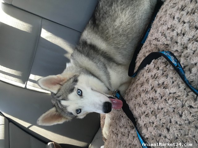 sky is an eight months old male Siberian husky. a beautiful and passionate yet a strong dog, he's great with children. he was born in a farm in Dubai. fully vaccinated.