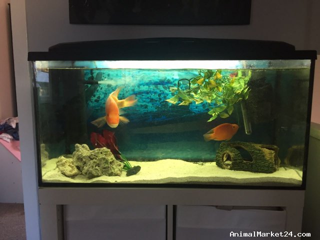 Huge red devil fish and 400 litre tank for sale. Was bought for my son but he's lost interest. Tank itself cost around 3000 the fish was 400 and there is an extra filter in it too.