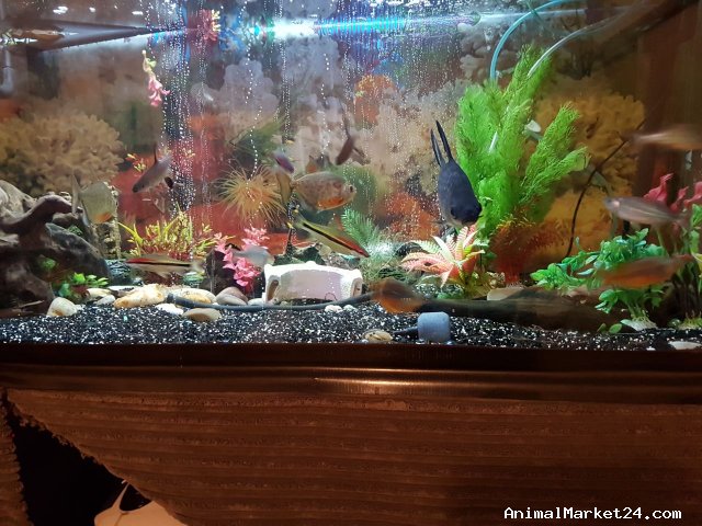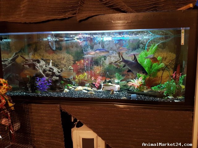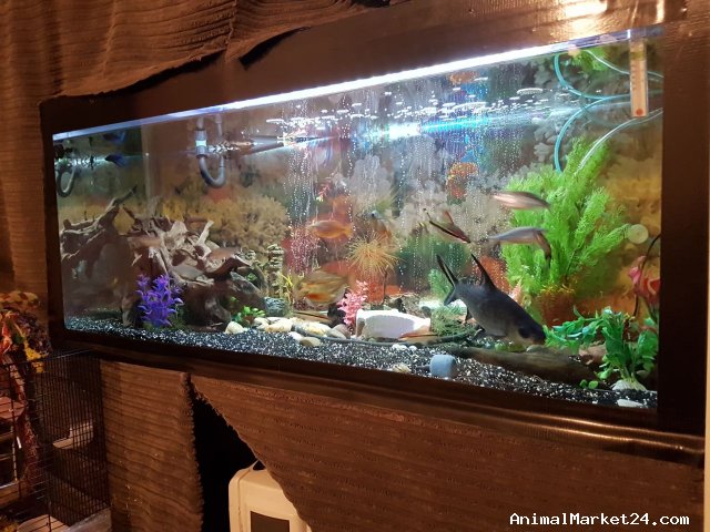 3 silver back sharks, 1 zebra, 5 Giant Danios, 2 dollers, 3 torpedos, 1 garamie, 2 rainbows, 2 pleacks, 19 tropical fish in total and you get an External filter with uv, Quality Pump, with good air stones, Large bog wood, Stones and ornaments, Led lights, plus Food and treatment for tank. no time wasters as its well over 1000 in total to buy. come and see it before you take it away. no need for anything else as its got everything all setup complete and i will not sell seperate so must go all together 180 ono