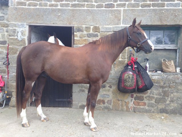 Poetryin Motgne, a stunning 7 year old chestnut gelding. His name is fitting him with his grace and movement. He is a kind and willing horse, always first at the gate to greet his human. He would be well suited for Western Pleasure, Dressage, and Endurance. With his 4 white socks and beautiful chestnut coloring his Motgne will make you stop and take notice. He loves to do liberty work, comes when I call him, stays with me at my shoulder, does a complete right and left turn, back up, and trot. He has had no health issues, good feet, and work that has been easy on his joints and body. He has been under professional training for the past 7 months.