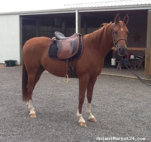 Poetryin Motgne, a stunning 9 year old chestnut gelding. His name is fitting him with his grace and movement. He is a kind and willing horse, always first at the gate to greet his human. He would be well suited for Western Pleasure, Dressage, and Endurance. With his 4 white socks and beautiful chestnut coloring his Motgne will make you stop and take notice. He loves to do liberty work, comes when I call him, stays with me at my shoulder, does a complete right and left turn, back up, and trot. He has had no health issues, good feet, and work that has been easy on his joints and body. He has been under professional training for the past 7 months.