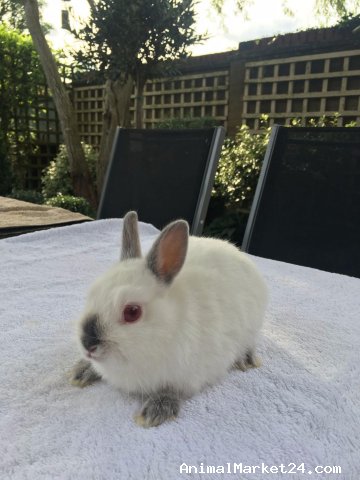 I have for sale a gorgeous little chap with a lovely inquisitive nature . He has been raised as a family pet and is very tame and docile . He has a perfect Netherland Dwarf apple face with tiny ears and will stay very small.. making him an ideal addition to your family. We adore him and hope you will too!!